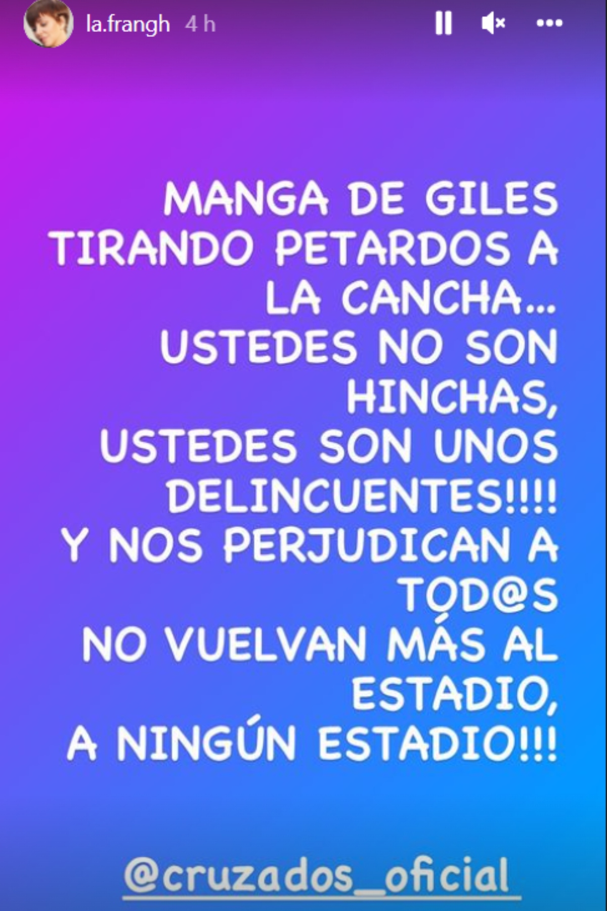 De hecho, Fran García-Huidobro comentó "Manga de giles tirando petardos a la cancha... Ustedes no son hinchas, son unos delincuentes y nos perjudican a todos".