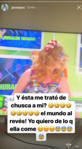 Ahí fue cuando Gallardo no aguantó y explotó contra la panelista. Sacando una foto al televisor donde veía el programa, la señora de Mauricio Pinilla acompañó la imagen con un texto. "¿Y ésta me trato de chusca a mí?. El mundo al revés, yo quiero de lo que ella come", puso en su story de Instagram.