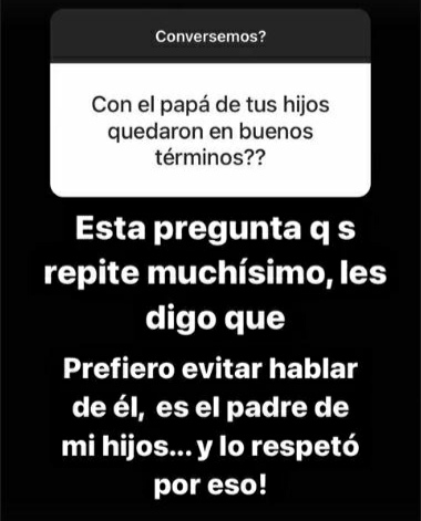 "¿Con el papá de tus hijos quedaron en buenos términos?", le consultó otro de sus seguidores en su cuenta de Instagram.