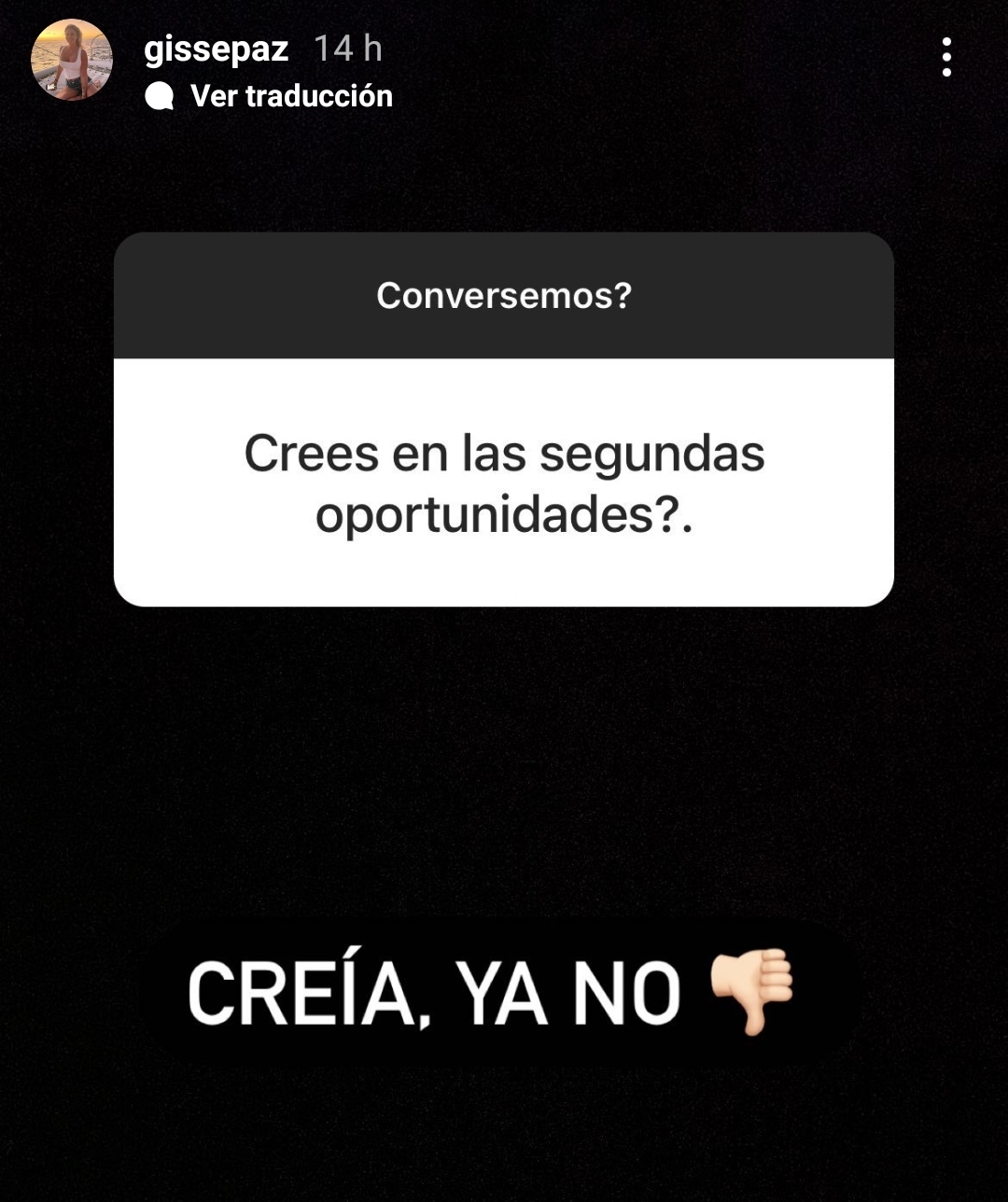 Asimismo, le consultaron si cree en las segundas oportunidades, ante lo que Gisselle Gallardo fue clara: "Creía, ya no".