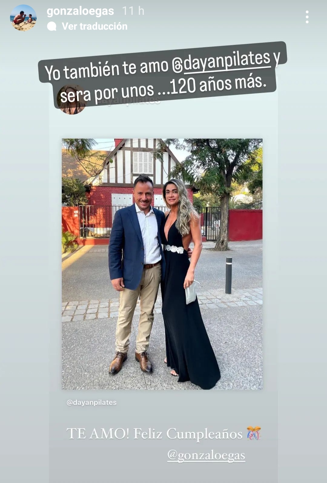 "Yo también te amo @dayanpilates y será por unos... 120 años más", le contestó de vuelta Gonzalo.