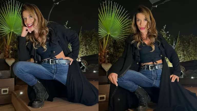 En esta ocasión, Carolina Arregui posó con jeans azul oscuro, un chaleco de color crema, una linda chaqueta de cuero en color negro y unas botas con flecos de tono gris.