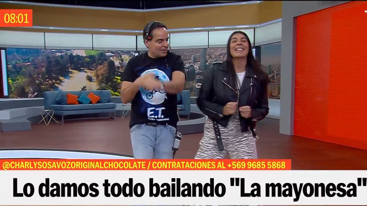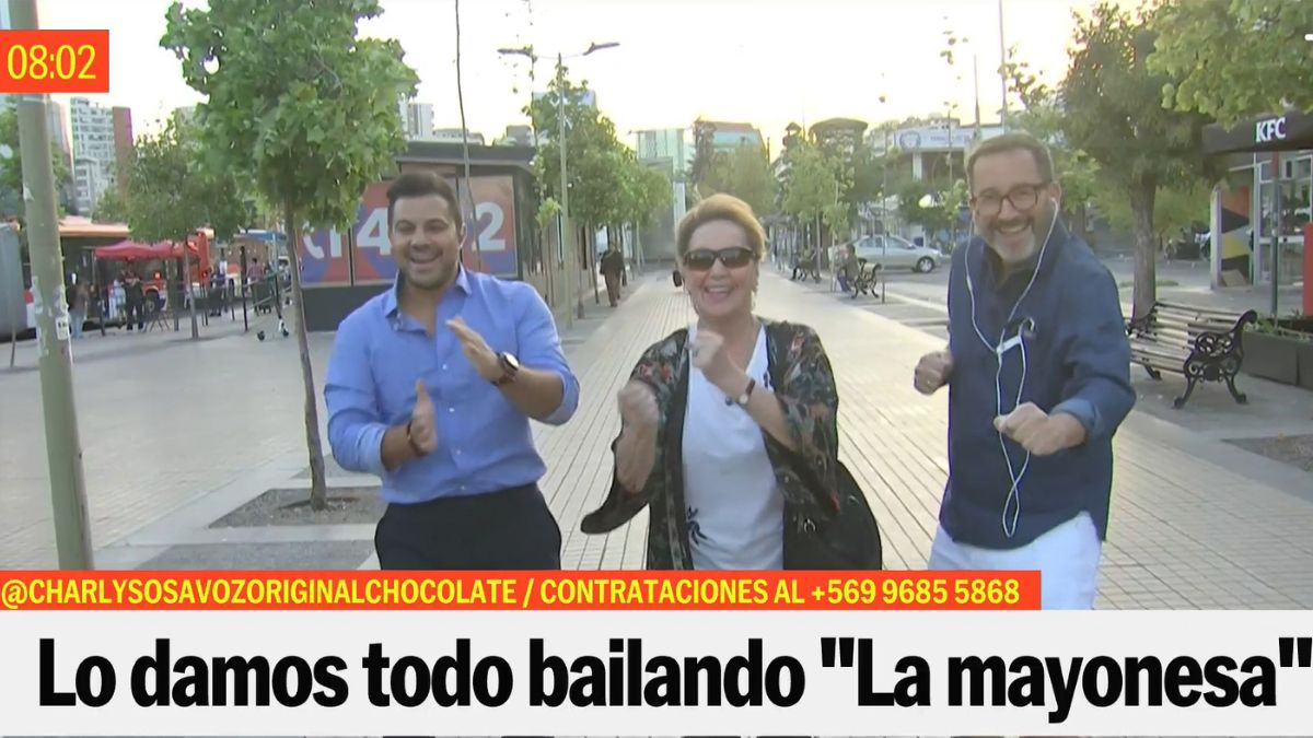 A las ocho en punto, María Luisa Godoy, Eduardo Fuentes, Felipe Vidal, Simón Oliveros y todos los miembros del espacio matutino de TVN iniciaron al ritmo de la clásica canción “Mayonesa” con la voz de Charly Sosa, vocalista del grupo Chocolate.