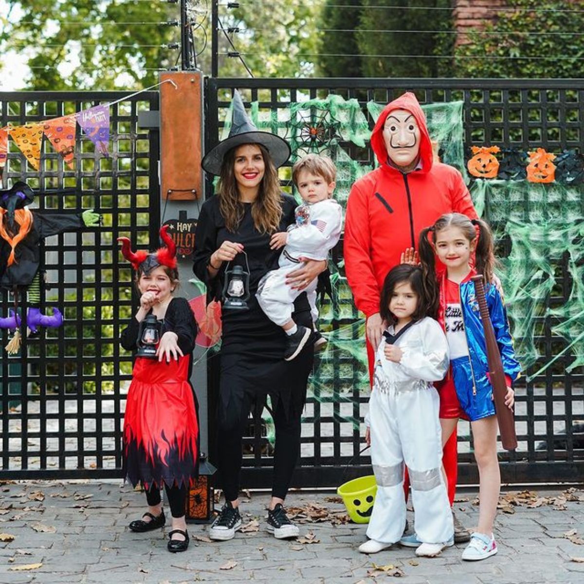 Los hijos de la animadora se disfrazaron de fantasma, diablita, astronauta y Harley Queen. Mientras que la presentadora de televisión también lució su disfraz de bruja junto a sus retoños.