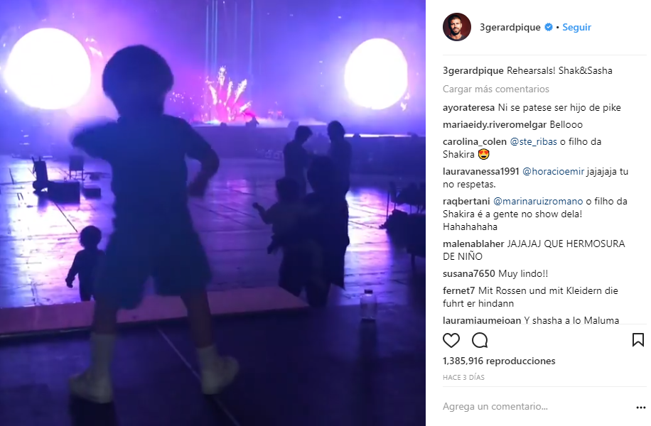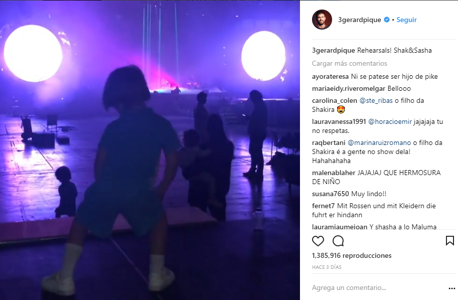 En un ensayo de la gira "El Dorado World Tour", Piqué captó al niño bailando y disfrutando de la música de su madre.