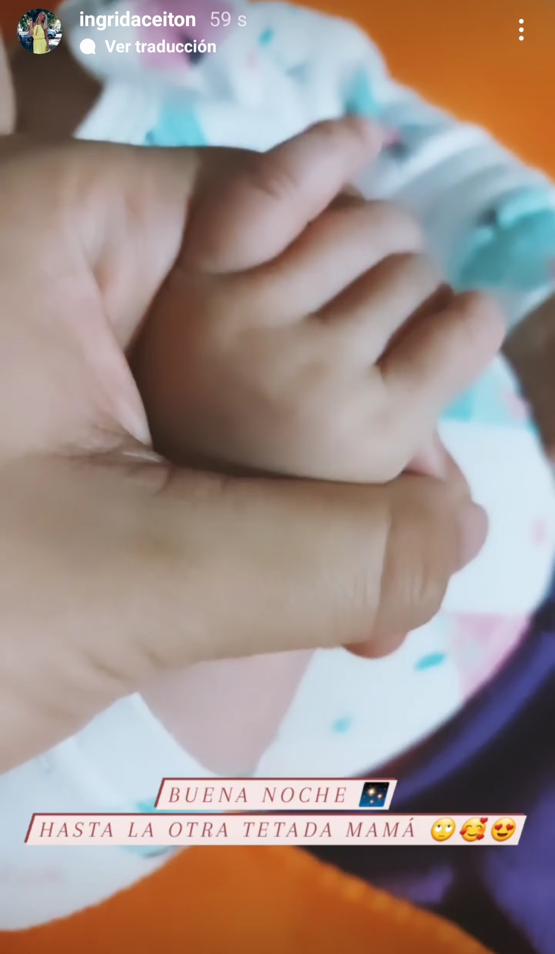 "Buena noche. Hasta la otra tetada de mamá", escribió Ingrid junto a la postal que subió a Stories.