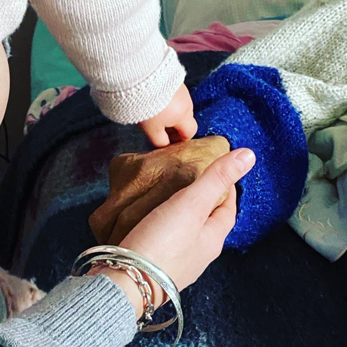 En su publicación, Ingrid Parra subió una foto de su mano sosteniendo la de su abuela. Además, en la imagen también se puede apreciar la mano de su bebé, Emma.