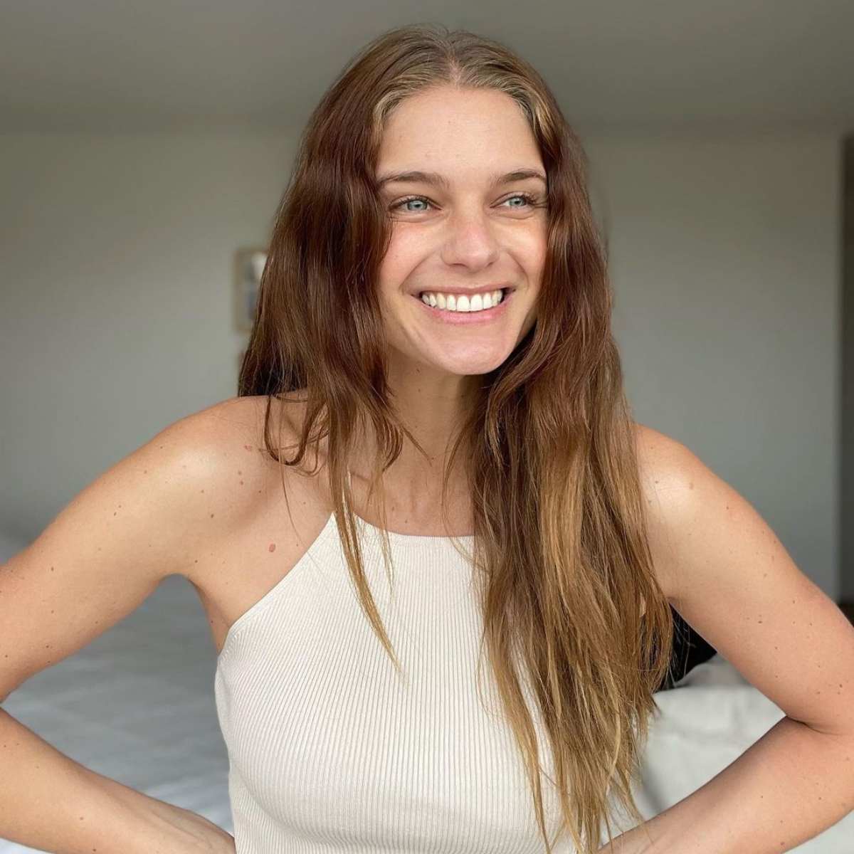 "Amo maquillarme, pero siempre me pasa que cuando termino de grabar una teleserie me cuesta mucho agarrar una brocha…Aprovecho de darle un súper descanso a mi piel", escribió junto a las imágenes.