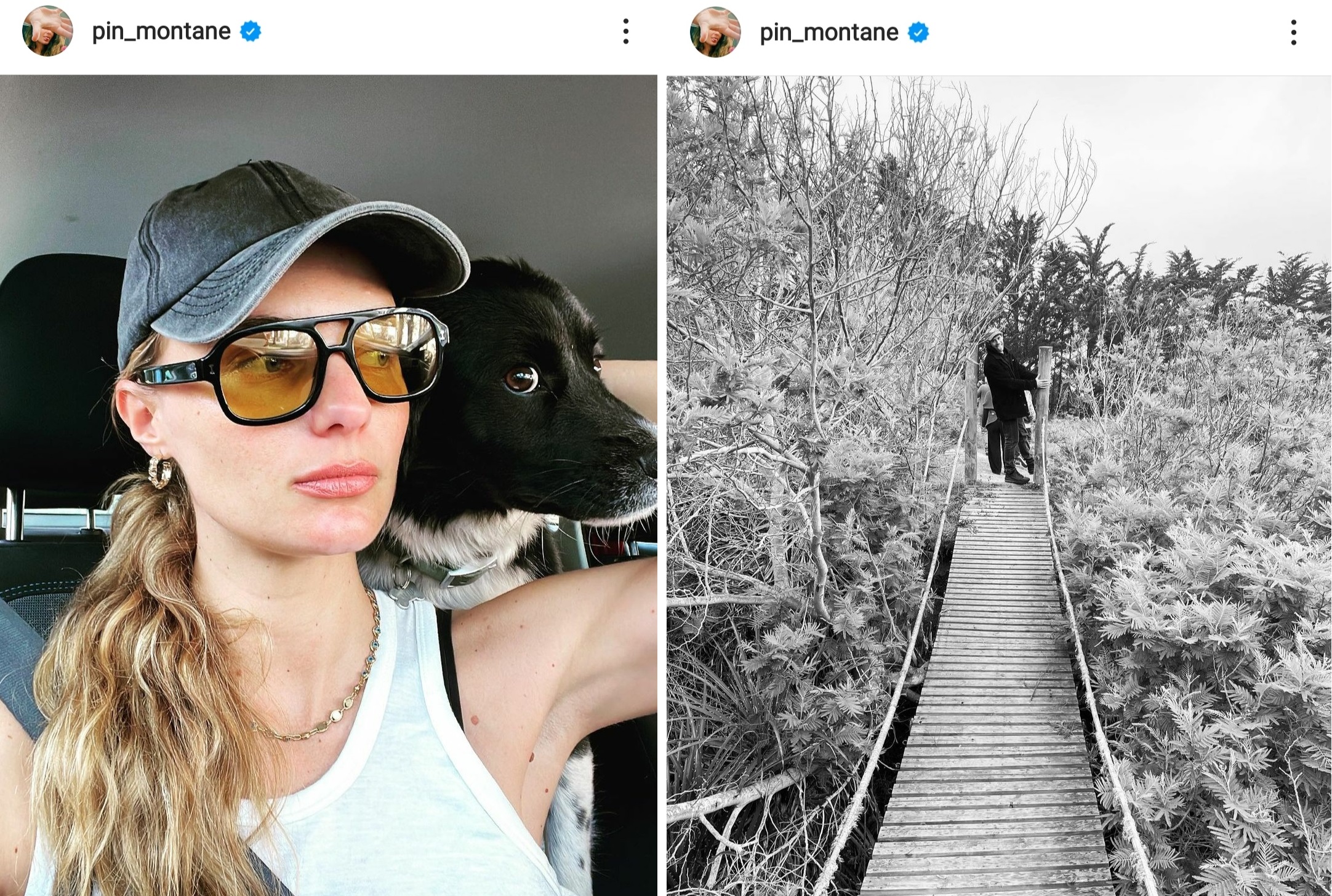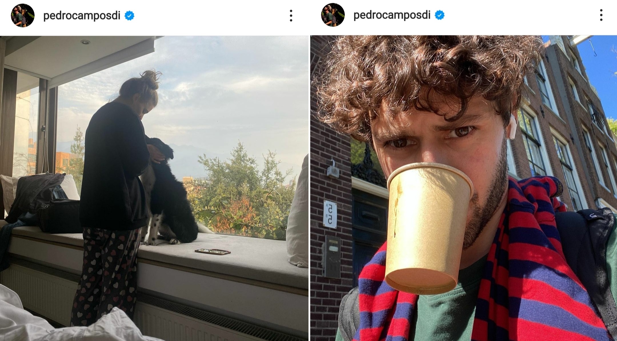 "🌵digging bodegas 🧠", escribió Pedro Campos para acompañar una selección de fotos. Entre ellas, una de Josefina Montané regaloneando con su mascota.