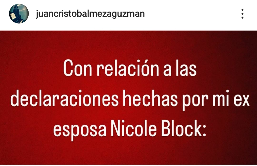 Sin embargo, a los pocos minutos de que Juan Cristóbal Meza publicara este mensaje en la mañana de este martes, Nicole Block reaccionó.