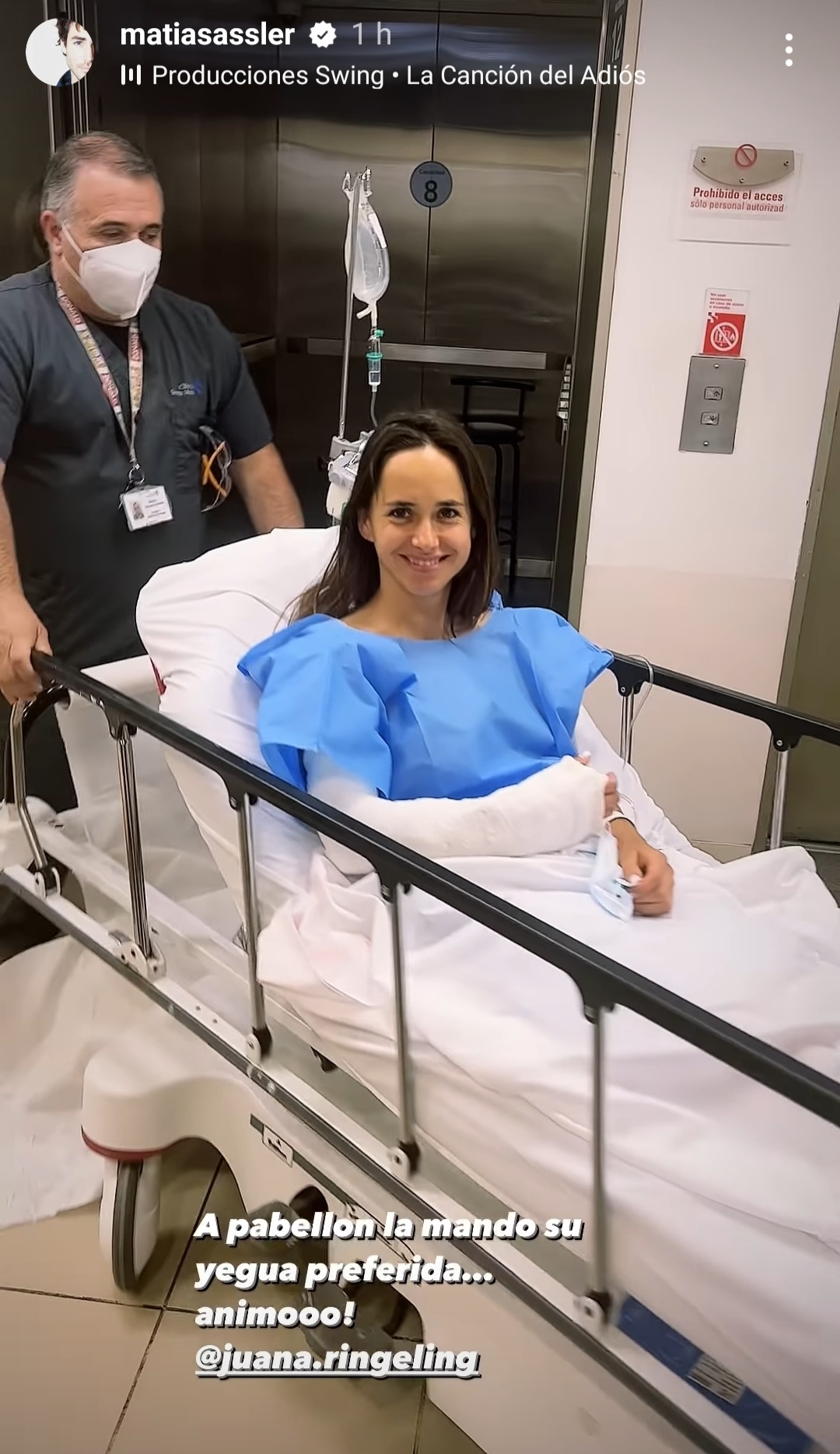 Y es que, desde una clínica, el actor publicó un video de su pareja, Juanita Ringeling, en camilla y con un brazo vendado.