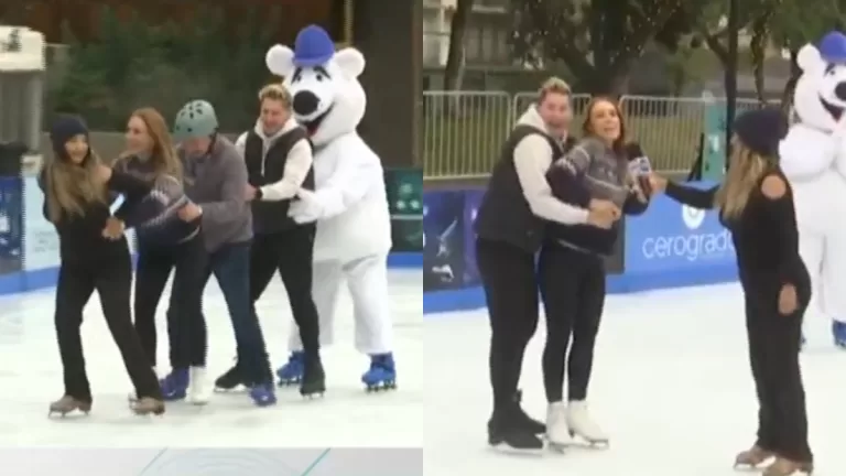 Mientras se encontraban en la pista de hielo, Karen Doggenweiler y Jaime Leyton compartieron el espacio con una pareja de patinadores que estaba practicando. Finalmente, la periodista se unió a ellos y deslumbró con su talento innato.