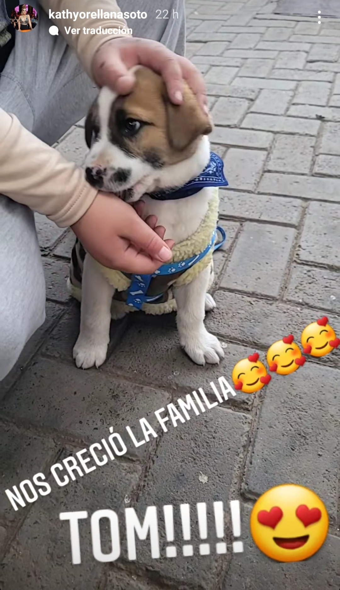 "Nos creció la familia 🥰🥰🥰 Tom!!!!", escribió Kathy Orellana para acompañar unos registros del pequeño perrito.