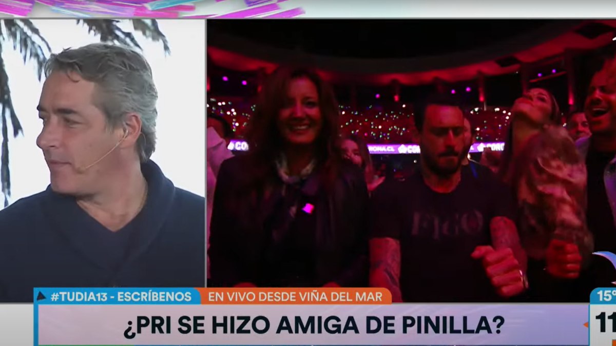 "(Pinilla) te estaba bailando a ti ¡mira, mira!", le comentaron a Priscilla Vargas. "Yo voy a hablar hoy con la organización del festival, para que por favor los asientos estén un poco más separados", dijo Repenning bromeando.