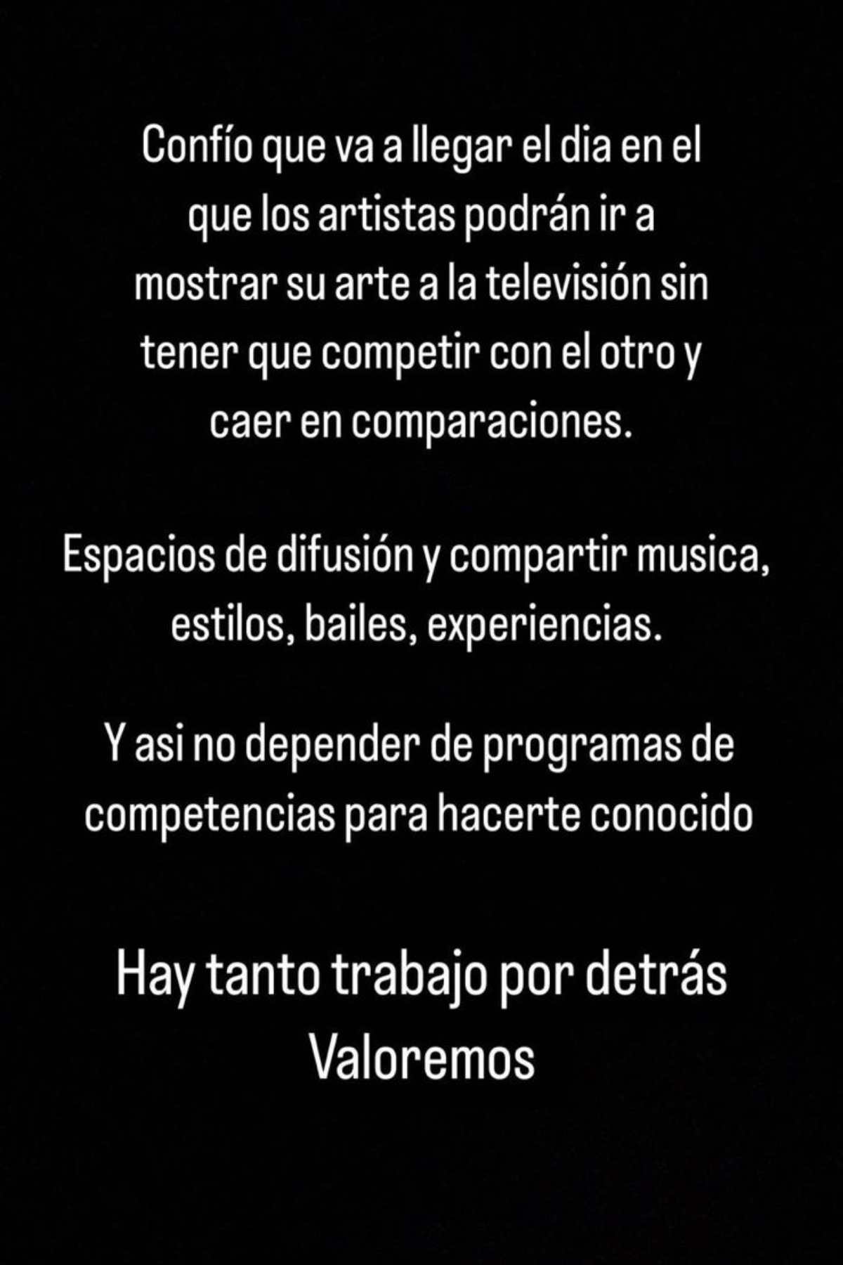 "Y así no depender de programas de competencias para hacerte conocido. Hay tanto trabajo por detrás. Valoremos", cerró Christell Rodríguez.