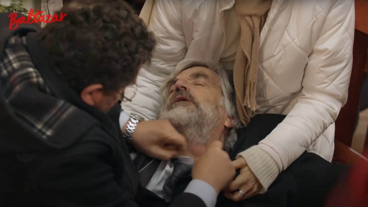 Por lo mismo, el rol interpretado por Francisco Reyes se paró, se agarró el pecho con fuerza y se desplomó, dando a entender que estaba teniendo un ataque al corazón.