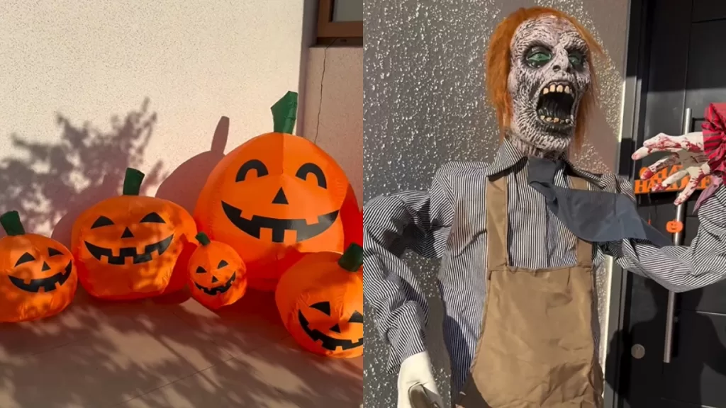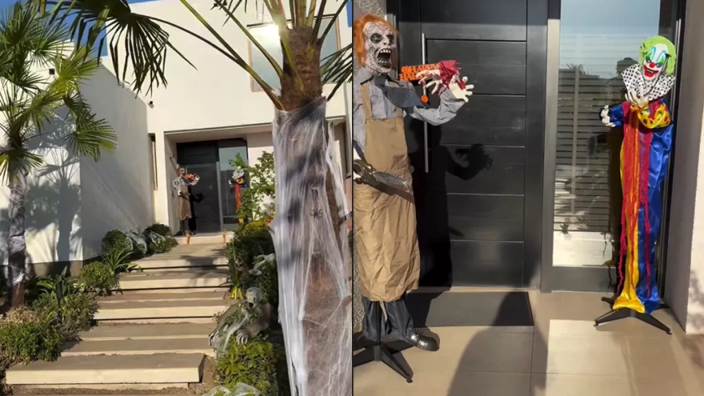 Recientemente mostraron ambos en sus historias de Instagram, la entrada de su casa, específicamente en el jardín, está decorada con telarañas gigantes, arañas enormes y calaveras.