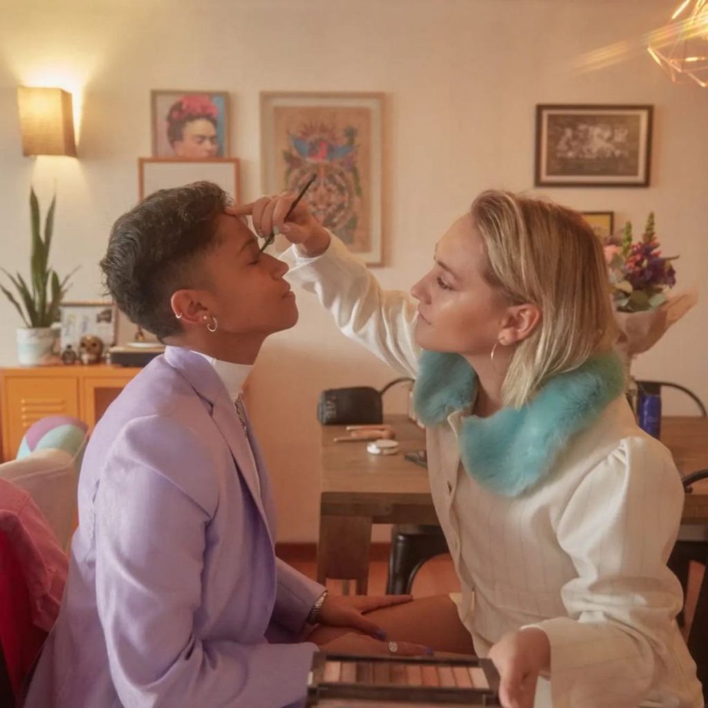 La pareja decidió compartir tres tiernas postales en redes sociales, donde Grace Lazcano sale maquillando a Fernanda Pinilla, luego una foto ambas posando sonrientes y para terminar la unión de sus manos.
