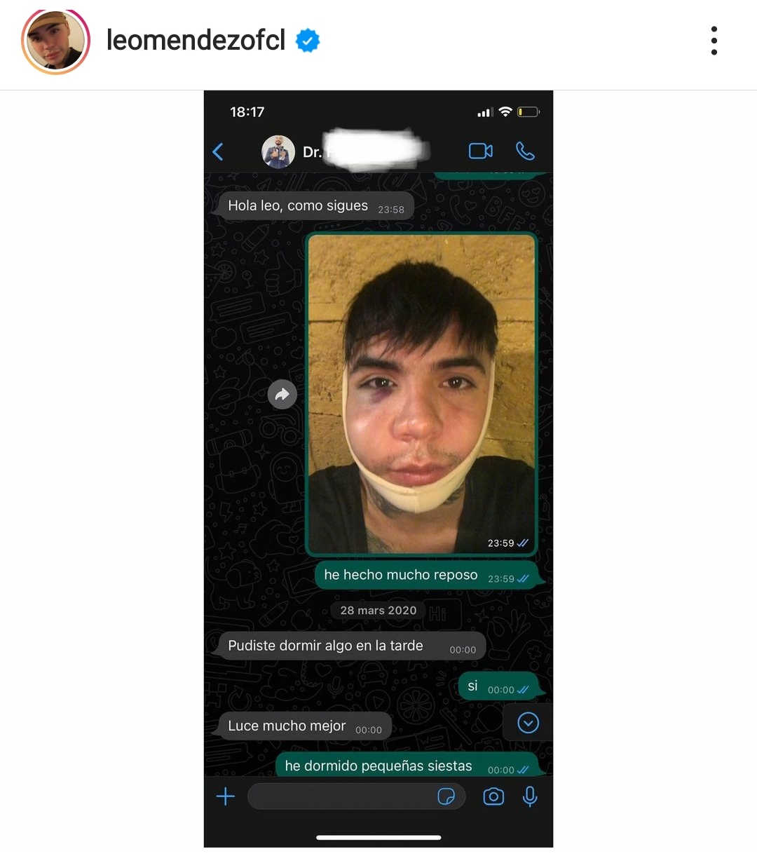 Revisa: Leo Méndez compartió impactantes fotos de grave accidente que sufrió en su visita a Chile