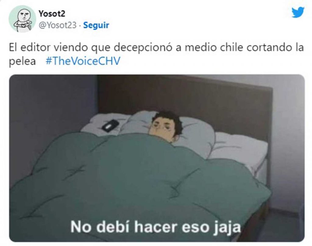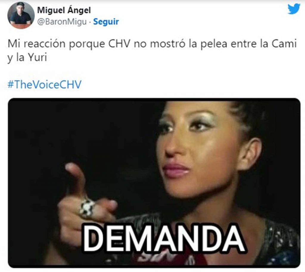Son muchos los televidentes que se quedaron con las ganas de ver la supuesta pelea que tuvo lugar entre Yuri y Cami en The Voice Chile. Como no fue emitida, varios llenaron de memes las redes sociales, principalmente Twitter: