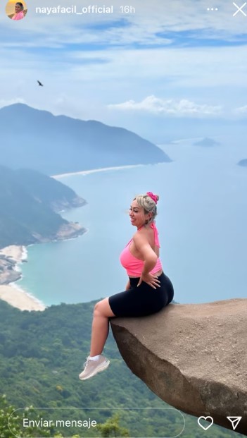Sobre sus fotos en este lugar de Río de Janeiro, Naya Fácil escribió en su Instagram que era la postal "por la cual más me he sacrificado en mi vida, una hora y media caminando un trekking en subida (...) fue tan brígido que casi abandoné, así que por favor, valoren esta foto".