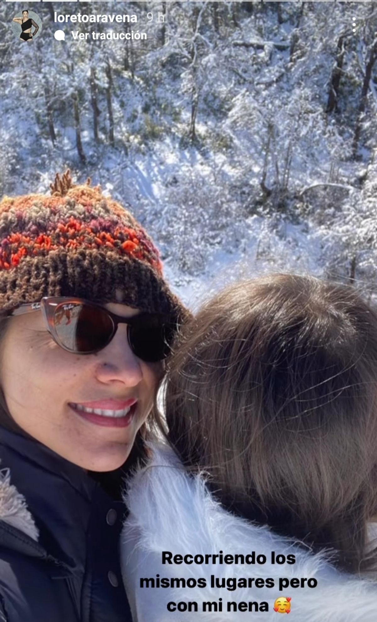 'Recorriendo los mismos lugares, pero con mi nena', publicó Loreto Aravena en una captura que subió este martes 10 a sus historias de Instagram.