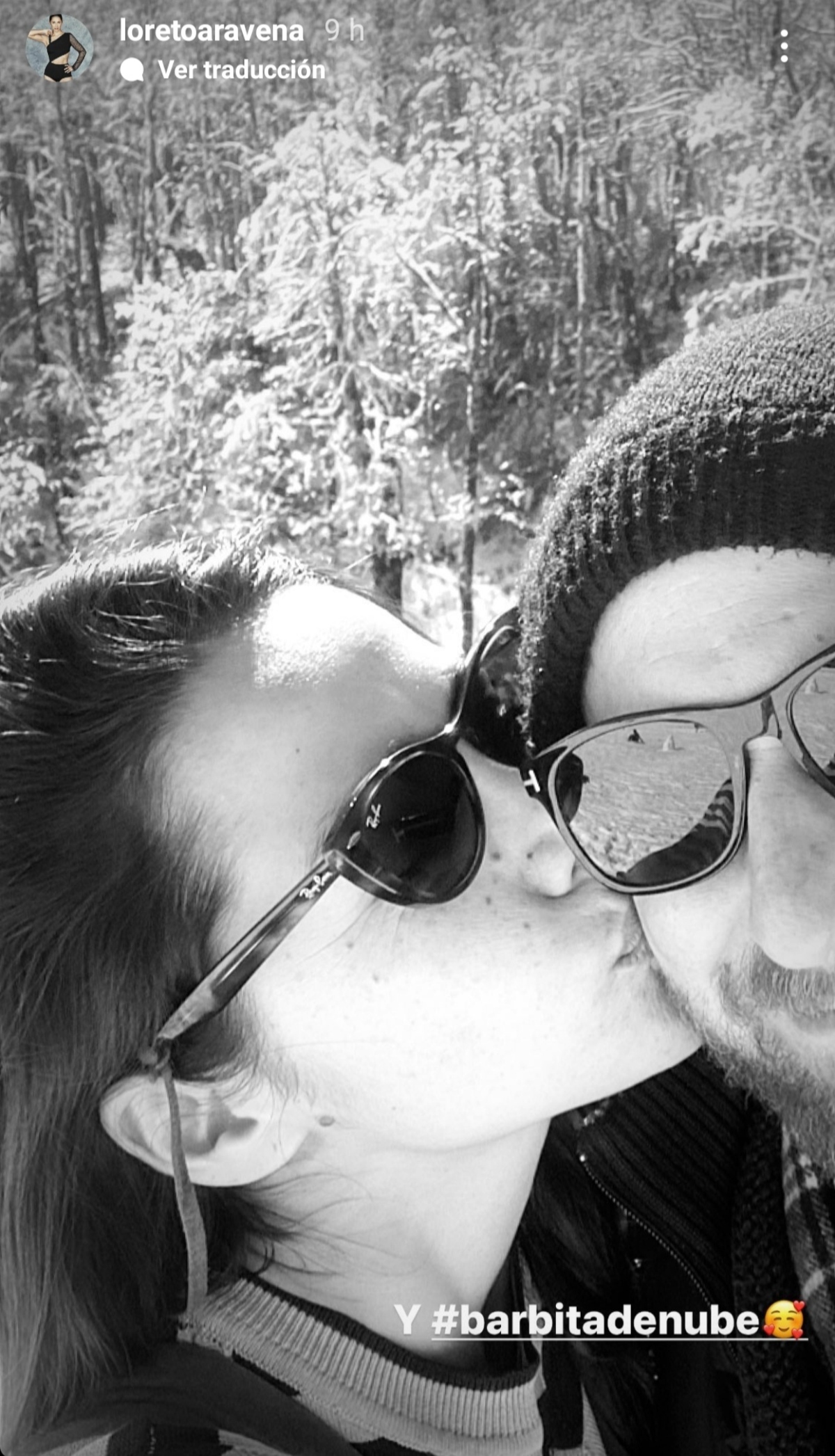 'Y #barbitadenube', agregó para acompañar una postal en la que aparece con Max Luskic posando desde el sur.