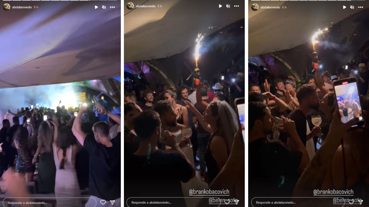 En una primera instancia, se puede apreciar un video que subió el camarógrafo a sus historias, en el que se puede ver a Belén Soto y Branko Bacovich felizmente dándose un apasionado beso frente a los presentes.