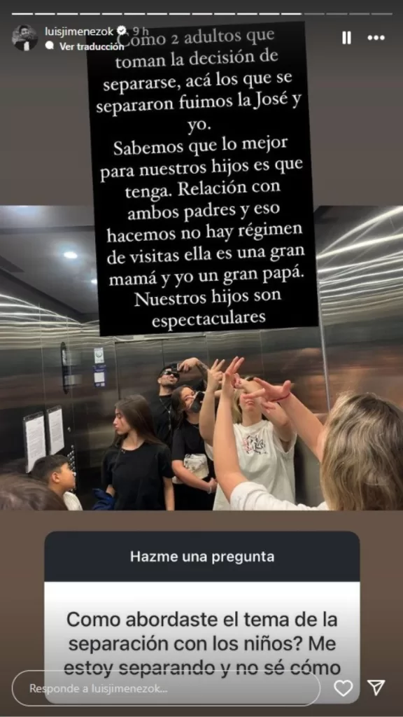 “Como 2 adultos que toman la decisión de separarse, acá los que se separaron fuimos la José y yo. Sabemos que lo mejor para nuestros hijos es que tengan relación con ambos padres y eso hacemos”, señaló.
