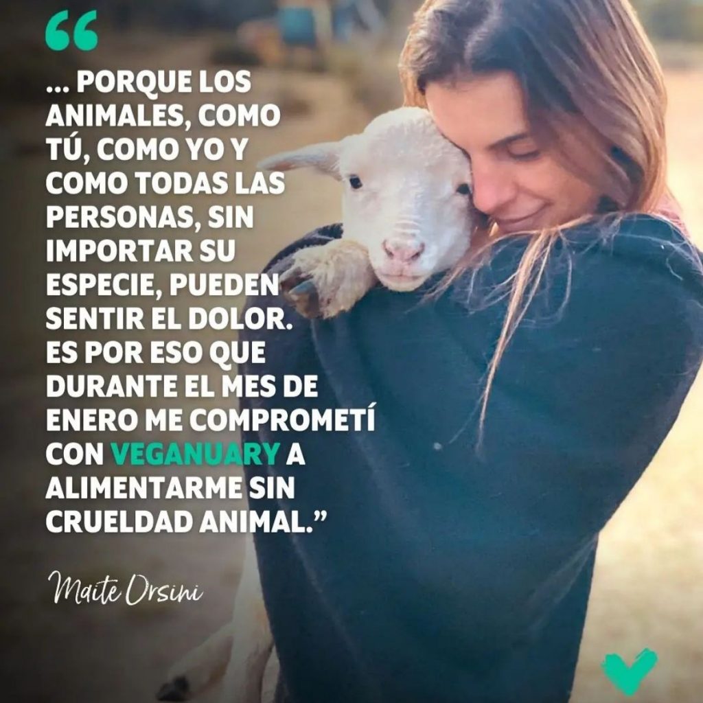 Sobre su decisión de unirse al desafío, Maite Orsini señaló que "porque los animales, como tú, como yo y como todas las personas, sin importar su especie, pueden sentir dolor. Es por eso que durante el mes de enero me comprometí con Veganuary a alimentarme sin crueldad animal".