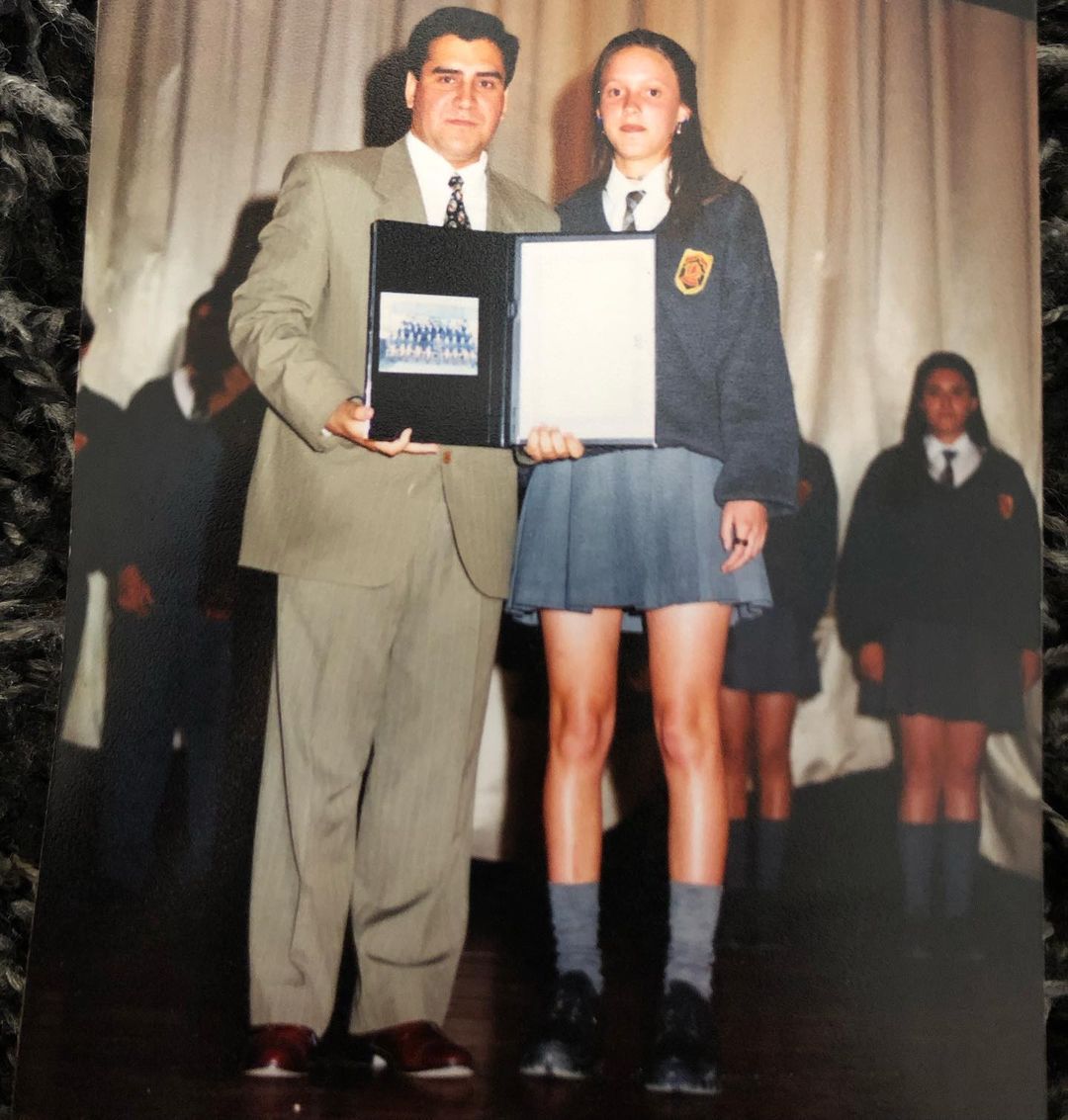 "Oye, pero que alegría más grande en mi rostro cuando me gradúe de #cuartomedio 🤣", fue parte de lo que escribió junto a la foto en la que aparece posando con su uniforme, recibiendo el diploma de cuarto medio.
