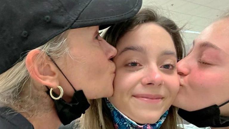 En las imágenes también se ve a Florencia, otra de las retoñas de Marcela Vacarezza, quien también aparece con los ojos llorosos en la despedida de su hermana.