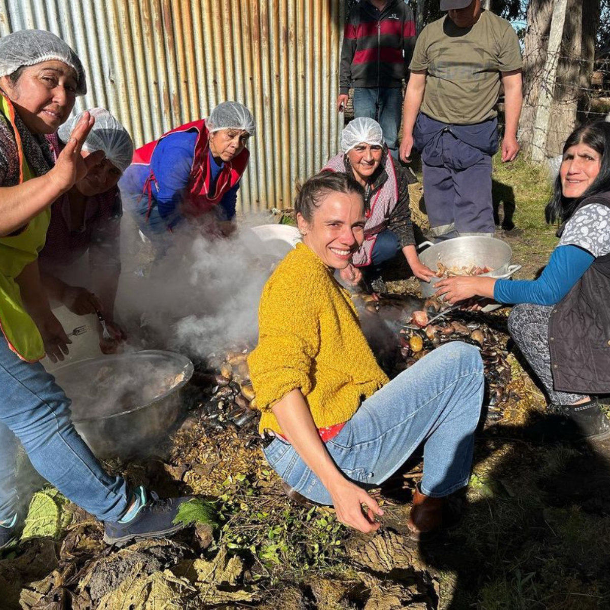 A través de sus redes sociales, la protagonista de Amar Profundo publicó una foto mientras preparaban un curanto en hoyo, tradicional comida en el archipiélago de Chiloé.