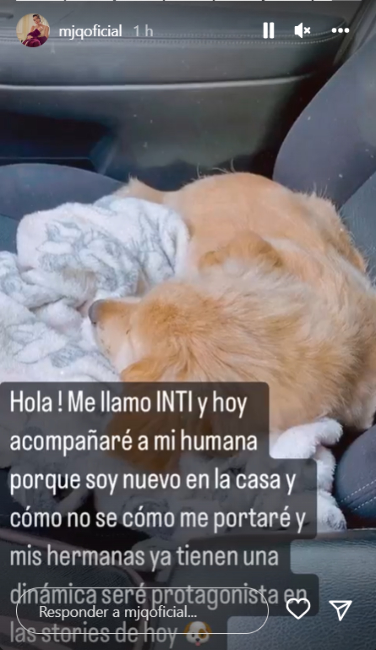 Finalmente, fue durante la mañana de este viernes 24 de junio, donde María José Quintanilla nuevamente subió un boomerang del nuevo integrante de su familia donde expreso: "Hola me llamo Inti y hoy acompañaré a mi humana porque soy nuevo en la casa y como no sé cómo me portaré y mis hermanas ya tienen una dinámica, seré el protagonista en las stories de hoy".
