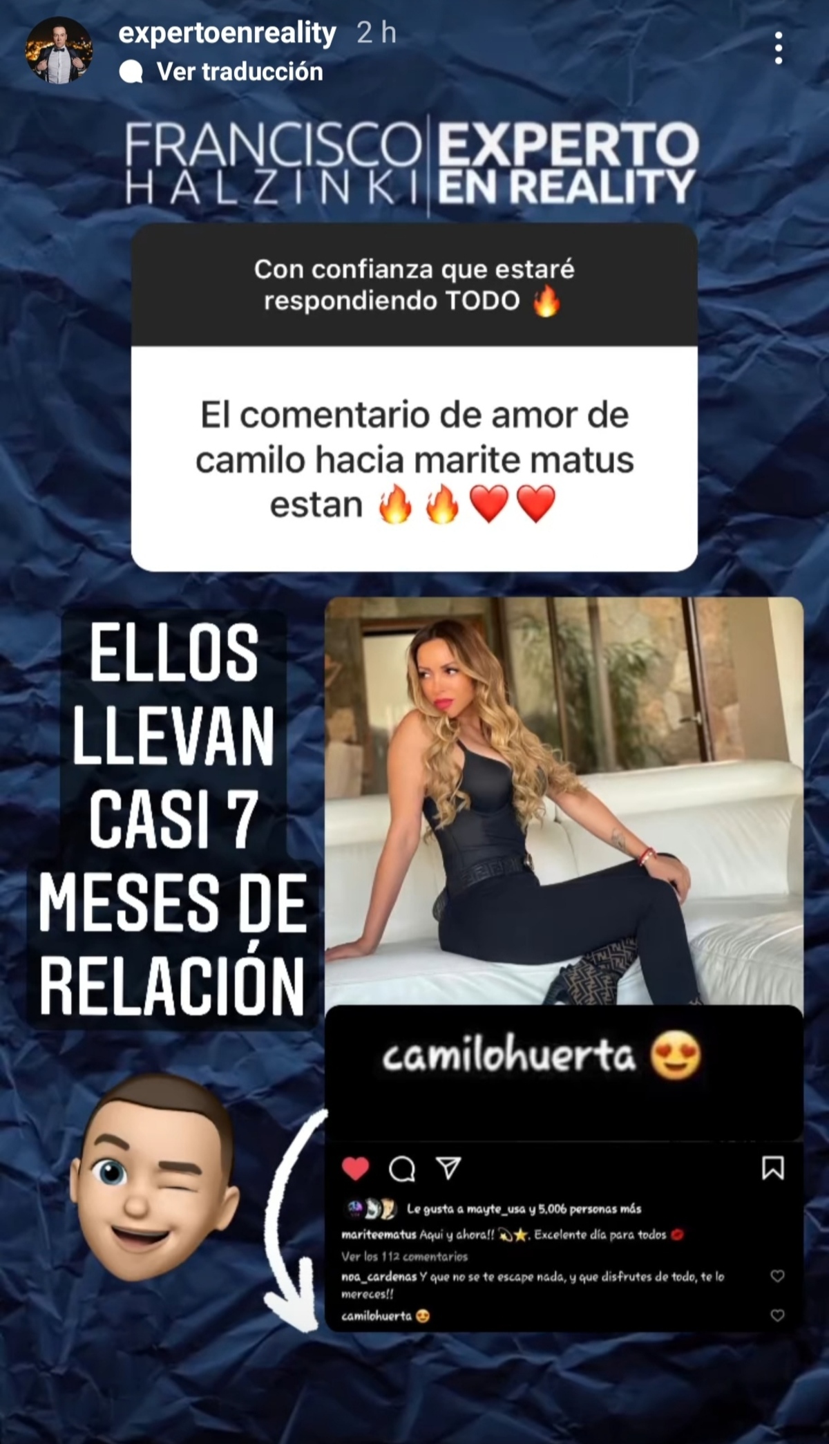 Pero no solo eso, ya que a través de sus redes sociales, el periodista afirmó que Marité y Camilo llevan alrededor de siete meses de relación.