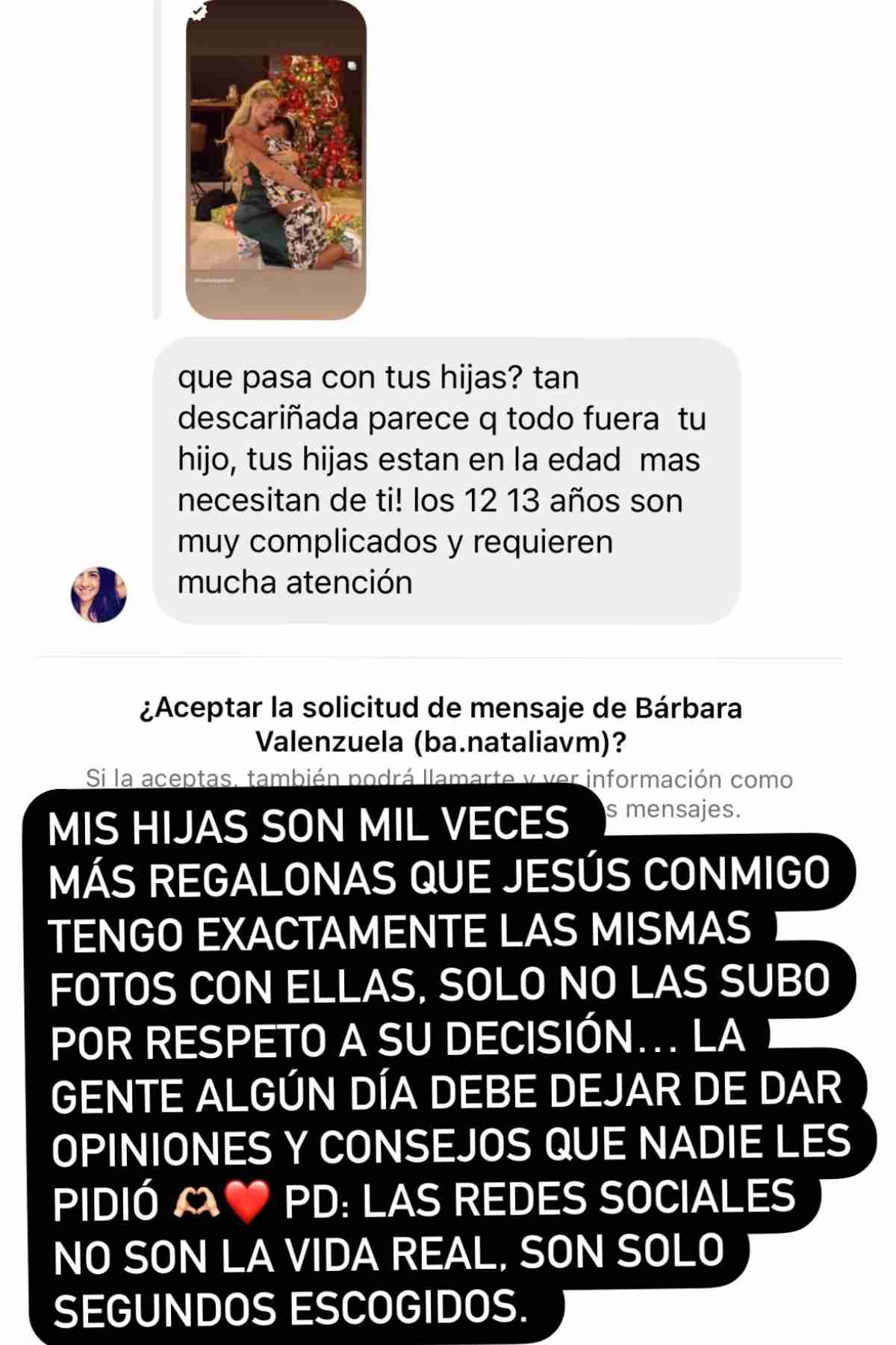 Así lo expuso la empresaria en sus historias de la red social, donde compartió uno de los tantos mensajes mala onda que le llegaron después de subir las postales.