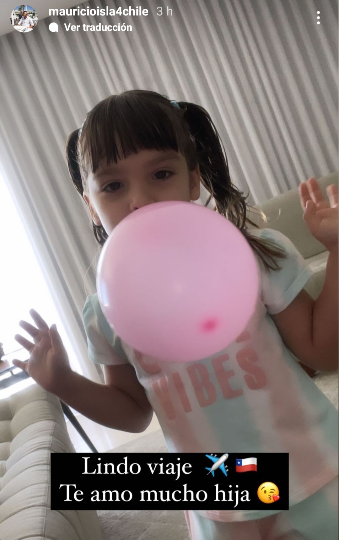 "Que tengas un lindo viaje y una hermosa vuelta a casa pequeñita hermosa... Te voy a extrañar mucho corazón mío 👨👧♥️🥰😍😘👌🙏 Tu Mamita y tu familia chilena te esperan con mucho AMOR", escribió Mauricio Isla para acompañar las tiernas postales junto a Luz Elif.