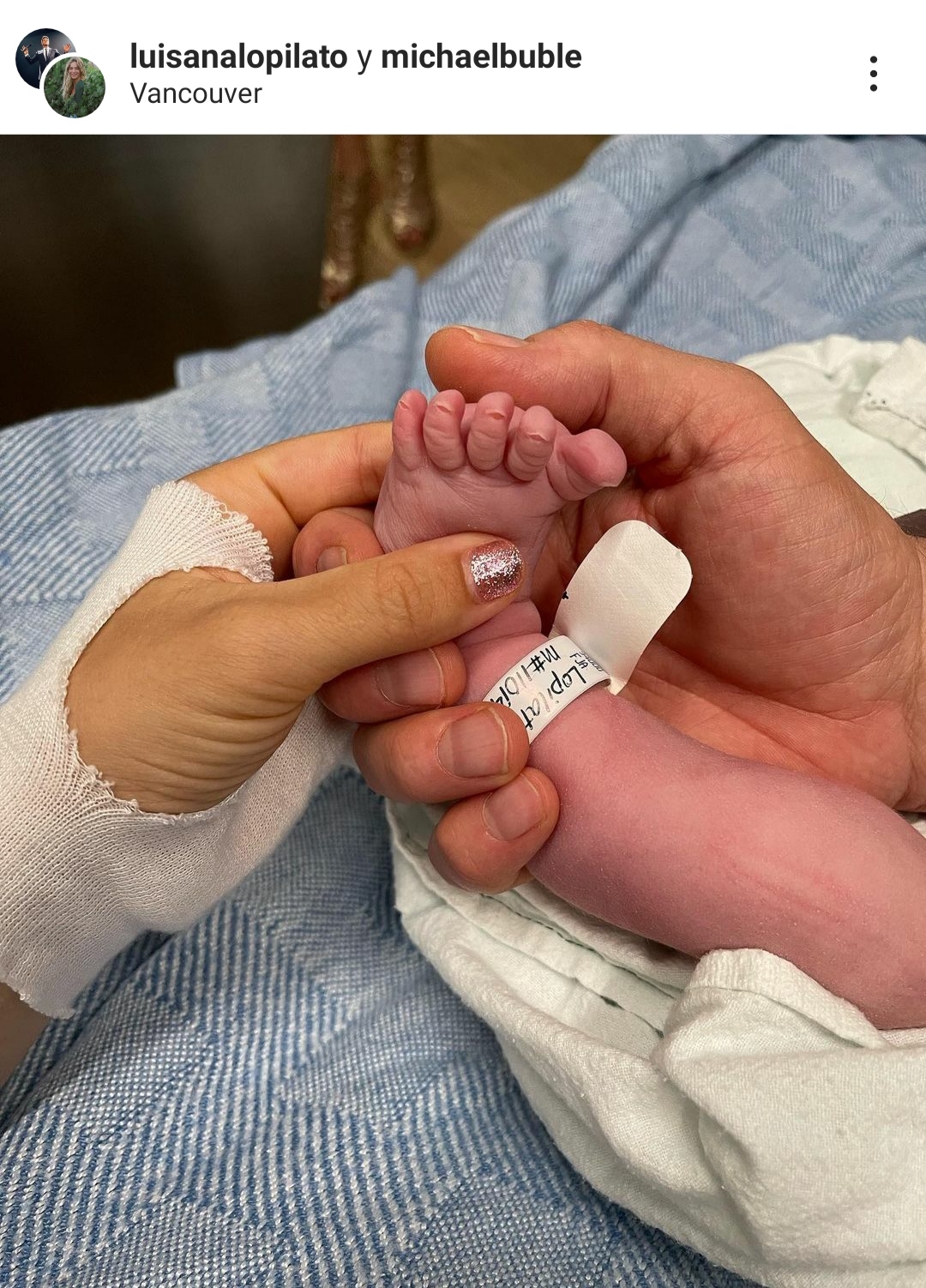 "Con 3,8 kg por fin llegaste a nuestras vidas!! Gracias Dios por esta bendición infinita de hacernos tus padres!! Te amamos! Noah, Elias, Vida, mamá y papá ❤️", agregaron Bublé y Lopilato al compartir la primera postal.