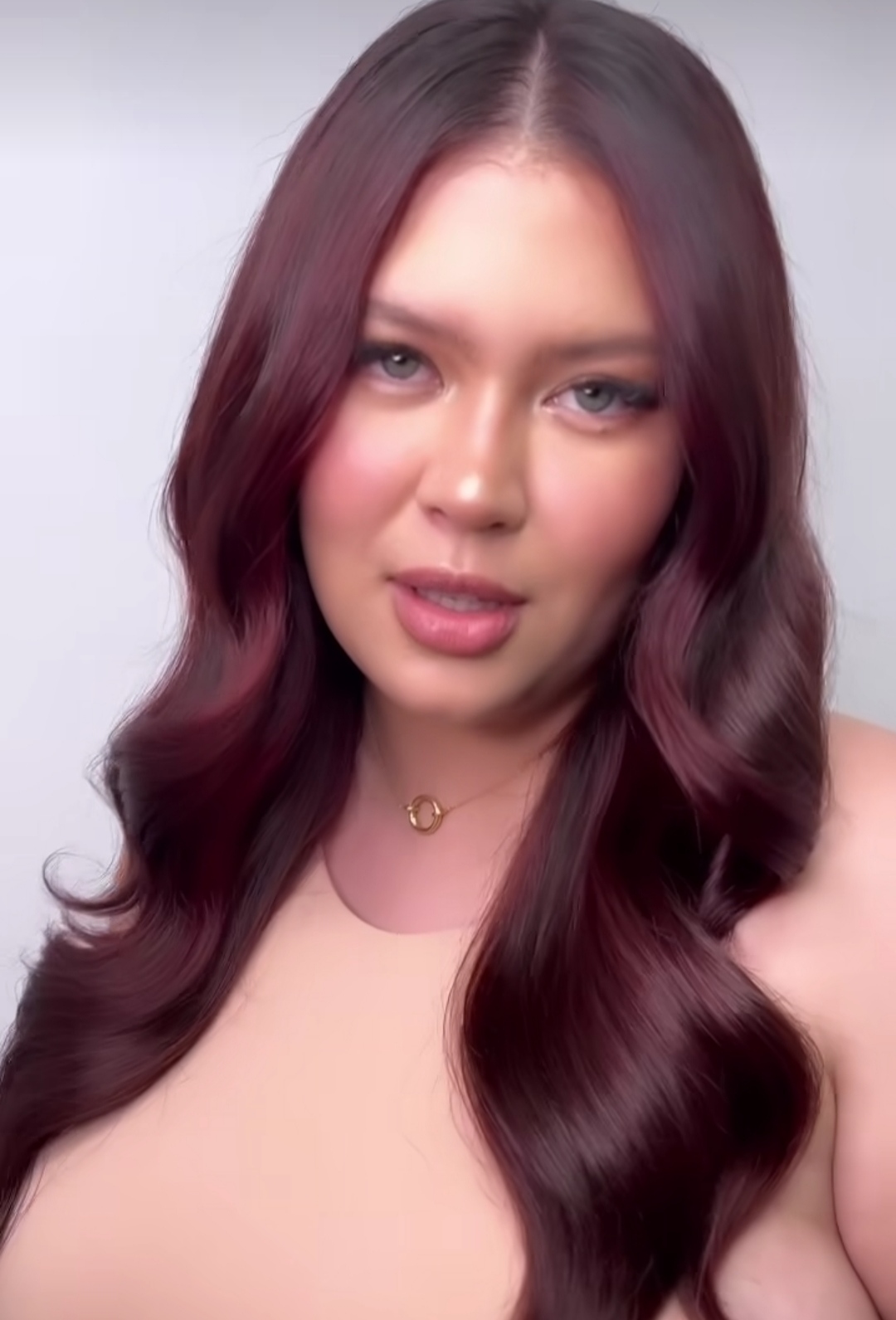 "¿Qué les parece este rojizo violeta? Yo lo amo y hace mucho quería tener un color que me llenara de luz", agregó la ex chica reality para acompañar la publicación.