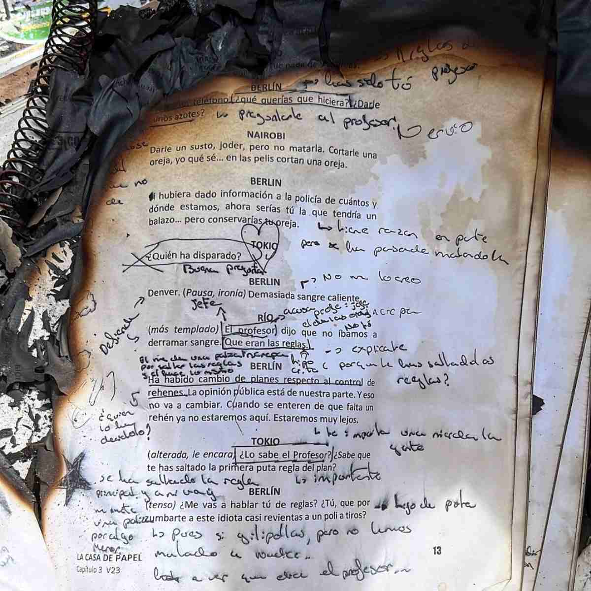 Se trata de una parte del libreto de La Casa de Papel, específicamente una conversación entre su personaje (Río), Berlín (Pedro Alonso) y Tokio (Úrsula Corberó).