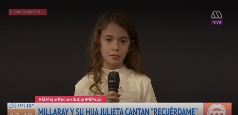 Entonaron la canción "Recuérdame" de la cinta de Disney "Coco". Primero partió cantando la pequeña, luego salió Viera a acompañarla y al final se unió el padre de Julieta, Álvaro López.