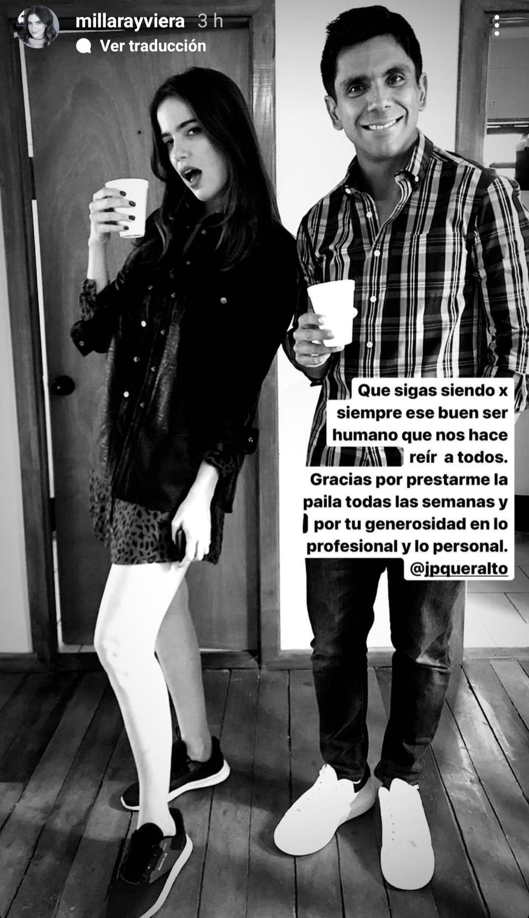 "Gracias por prestarme la paila todas las semanas y por tu generosidad en los profesional y lo personal @jpqueralto", agregó la animadora para acompañar una foto de camarín junto a su compañero.