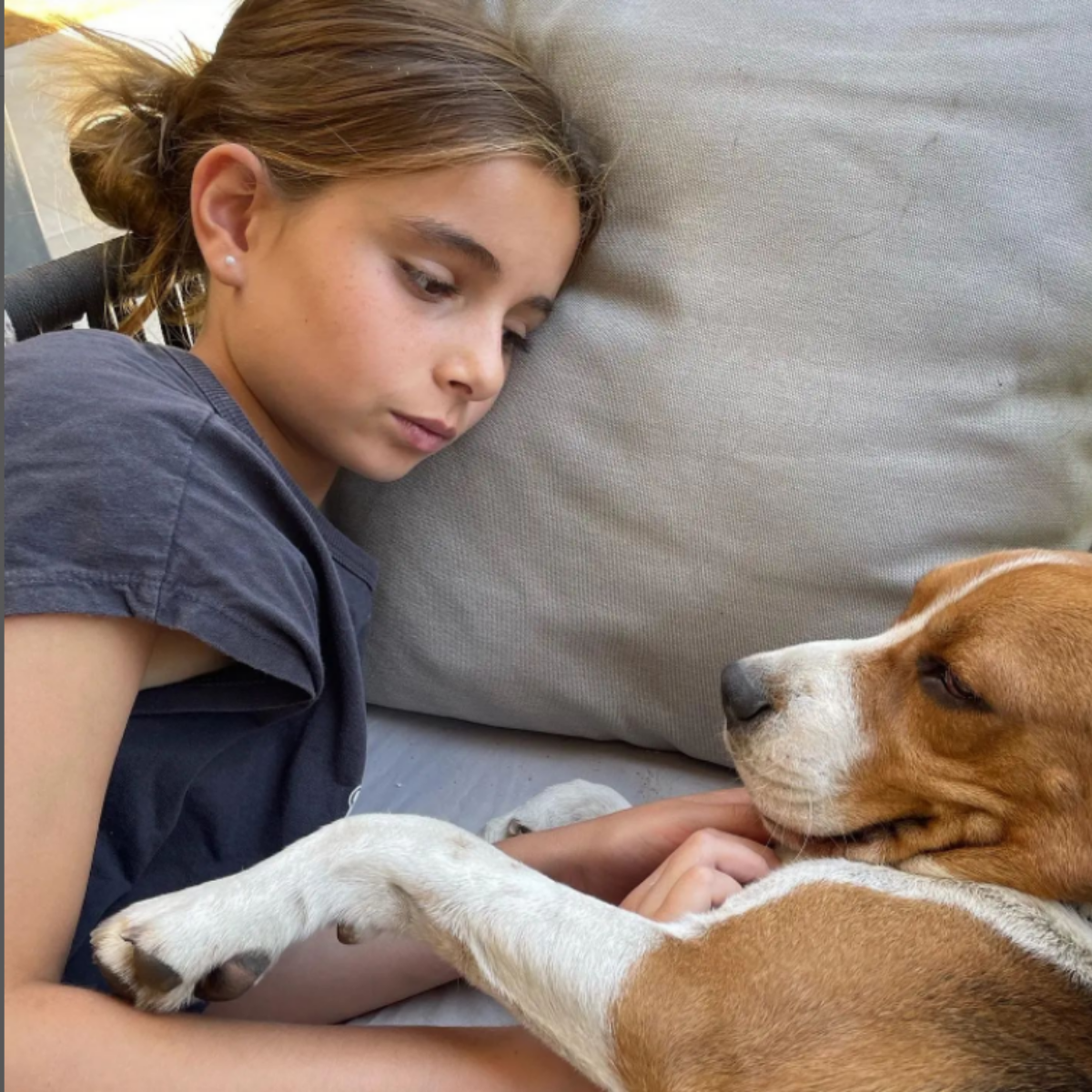 En la postal, Eloísa sale acompañada también de un tierno compañero, la mascota de la casa.