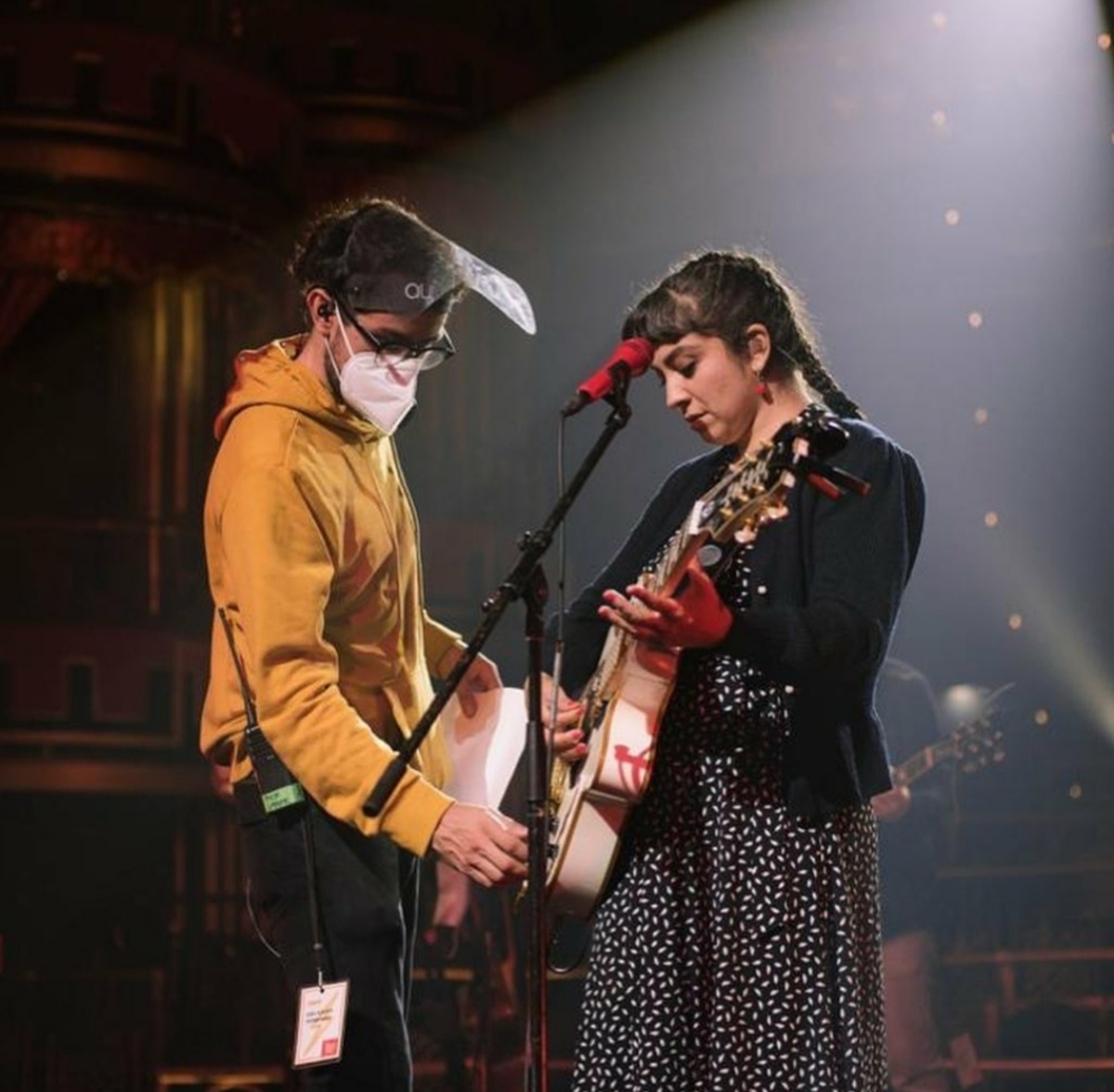 Pero también compartiendo un momento sobre el escenario, pues Joel es production manager y forma parte de la banda de Mon Laferte.