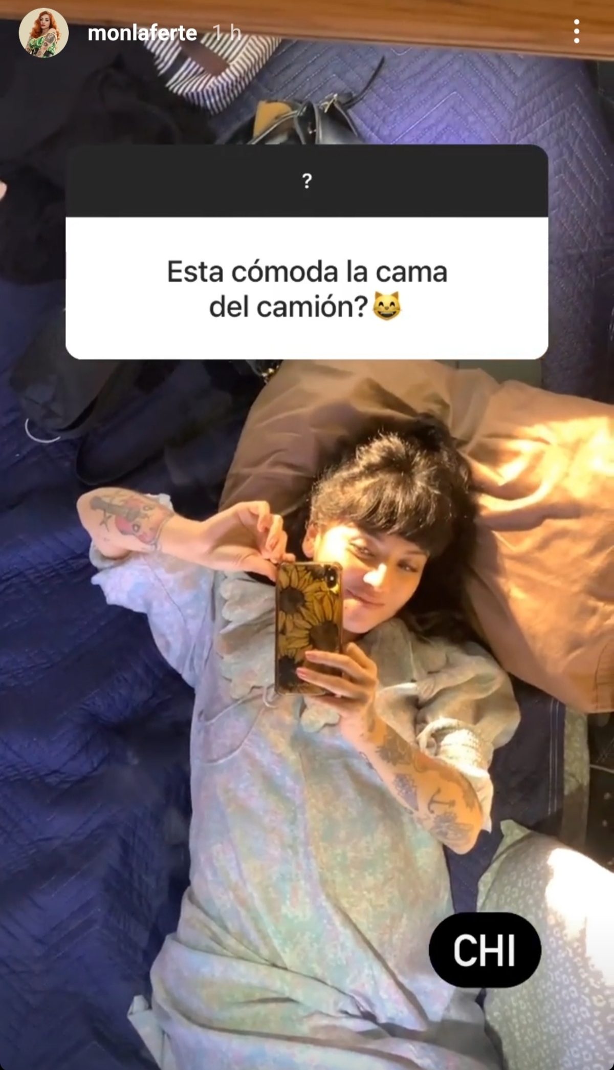 También a través de sus historias de Instagram, la cantante chilena mostró cómo es el vehículo en el que se traslada junto a su staff.