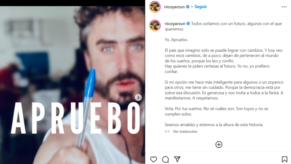 En esta ocasión, fue el actor Nicolás Oyarzún, quien dio a conocer cuál será su opción en este plebiscito de salida.