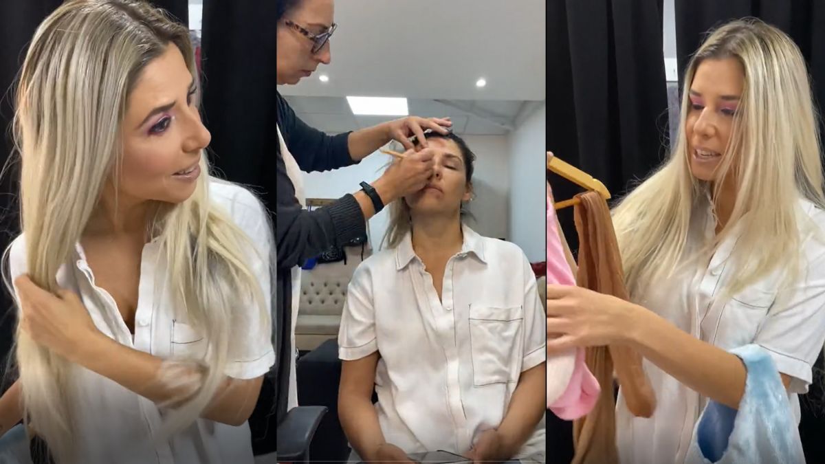 “Estoy lista con el maquillaje. No es fácil, no es rápido, pero estamos listos y con el pelo también. Ahora me toca el outfit de hoy”, relató.