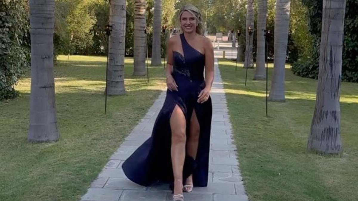 Fue en su cuenta de Instagram donde la comunicadora mostró el look que llevó a la ceremonia. Macarena Tondreau lució un vestido azul que no pasó desapercibido, tanto en la boda como en sus propias redes.