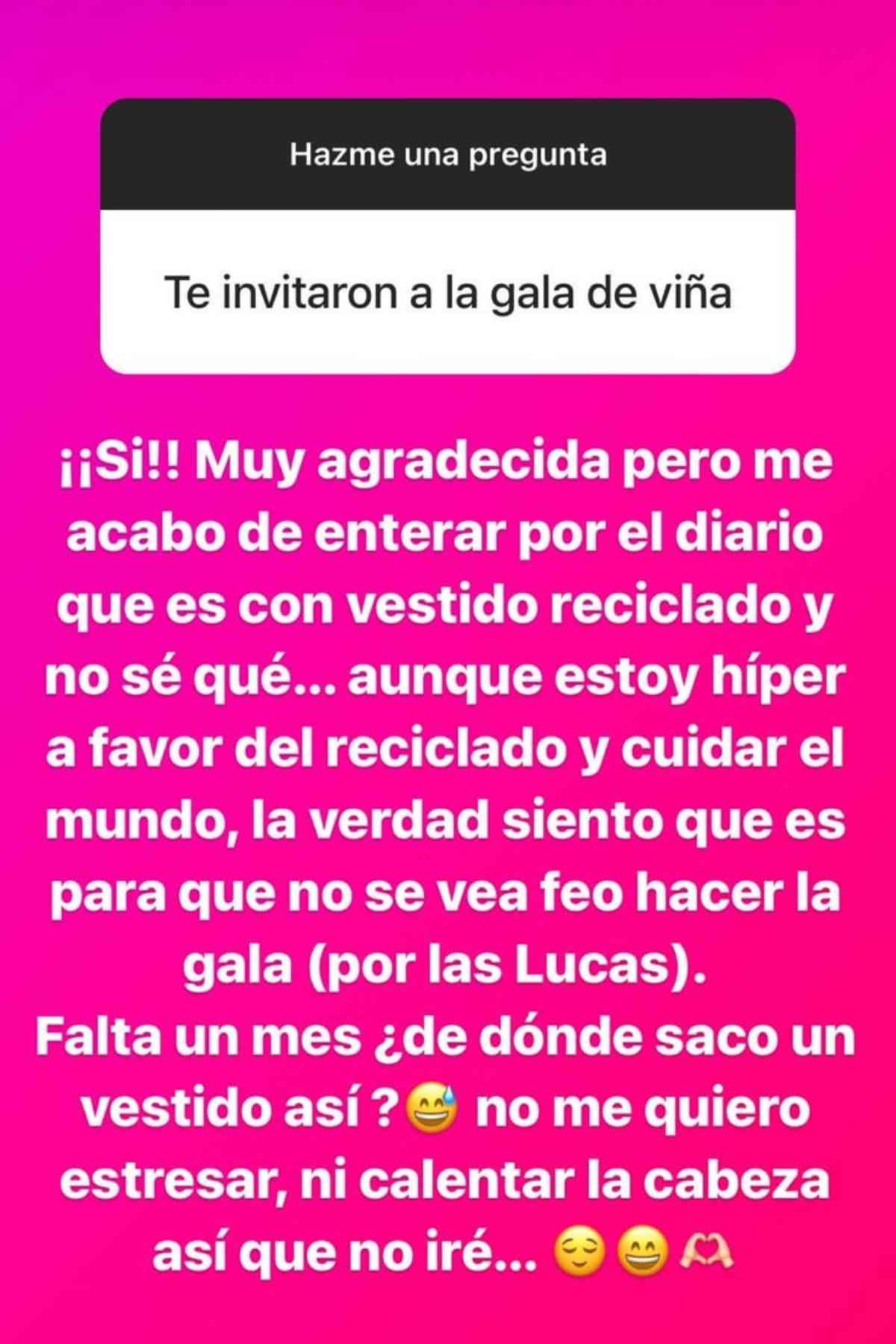 "¿Te invitaron a la gala de Viña?", fue la consulta que le hicieron, a lo que Coté López respondió que "Sí! Muy agradecida".
