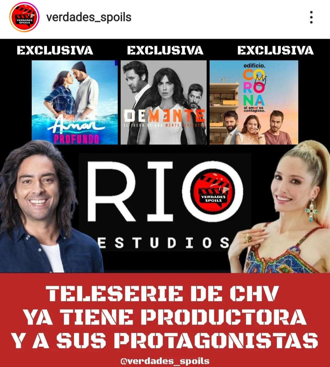 "Hace un tiempo te contamos que CHV prepara una nueva teleserie, la cual será grabada durante el segundo semestre de este año. Hoy, a modo de exclusiva, te contamos que la productora a cargo del proyecto será RIO estudios (ex DDRIO), los mismos realizadores de las recientes teleseries de Mega como Demente, Edificio Corona y Amar Profundo. El guion de la próxima producción dramática de CHV estará a cargo de Josefina Fernández, quien participó en la escritura de teleseries como Perdona Nuestros Pecados y Demente", adelantó la cuenta de spoilers.